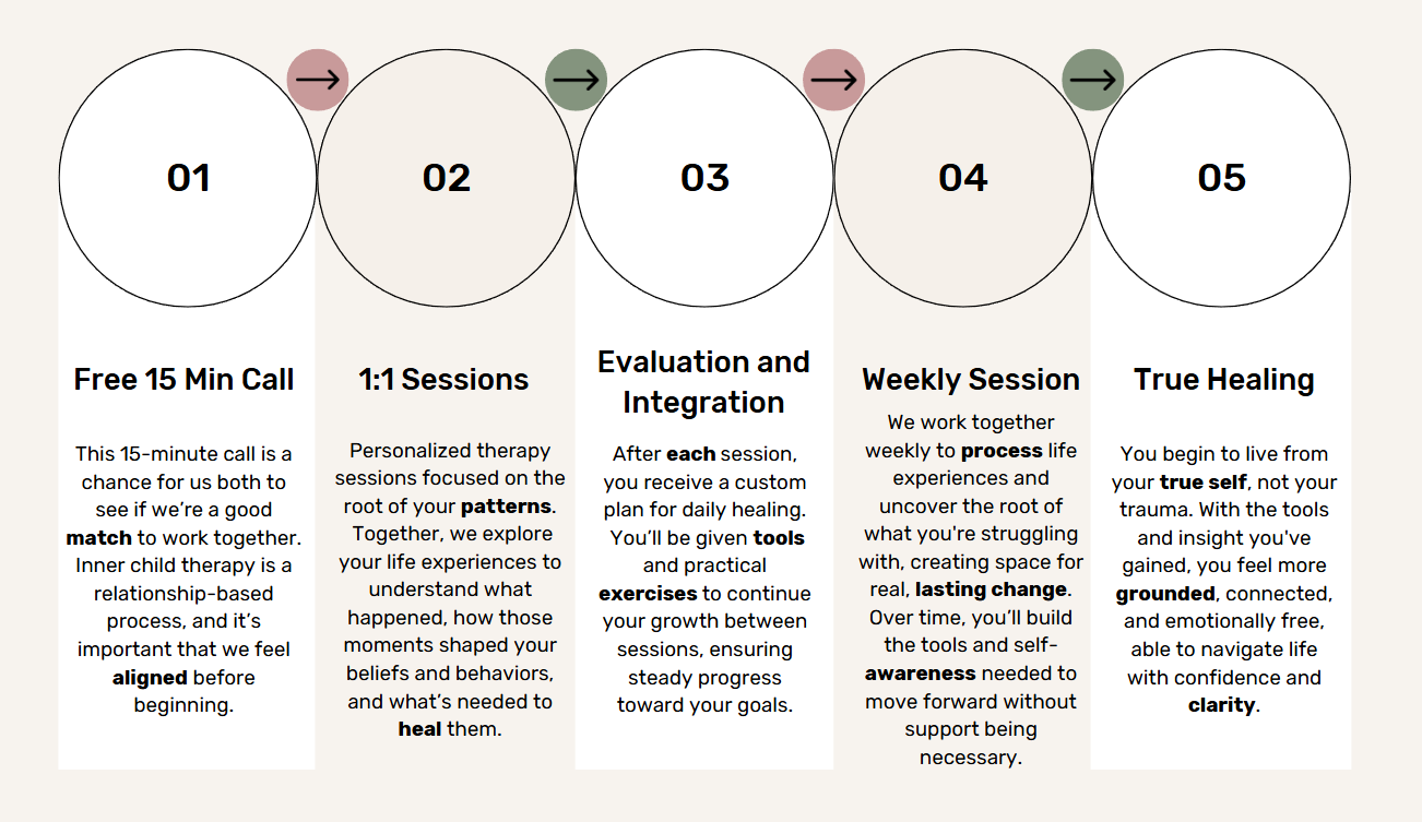 I specialize in inner child healing therapy, which focuses on addressing subconscious patterns formed in early childhood. By the age of 6, about 95% of our subconscious mind is already shaped—laying the foundation for how we relate to others, regulate our emotions, and view ourselves. When these foundational needs go unmet, it can lead to persistent difficulties in relationships, parenting, career satisfaction, and self-concept. Without healing, we often repeat inherited patterns, passing them down unintentionally. My work focuses on helping you understand those early imprints, develop healthier emotional responses, and build a life rooted in clarity, connection, and conscious choice.